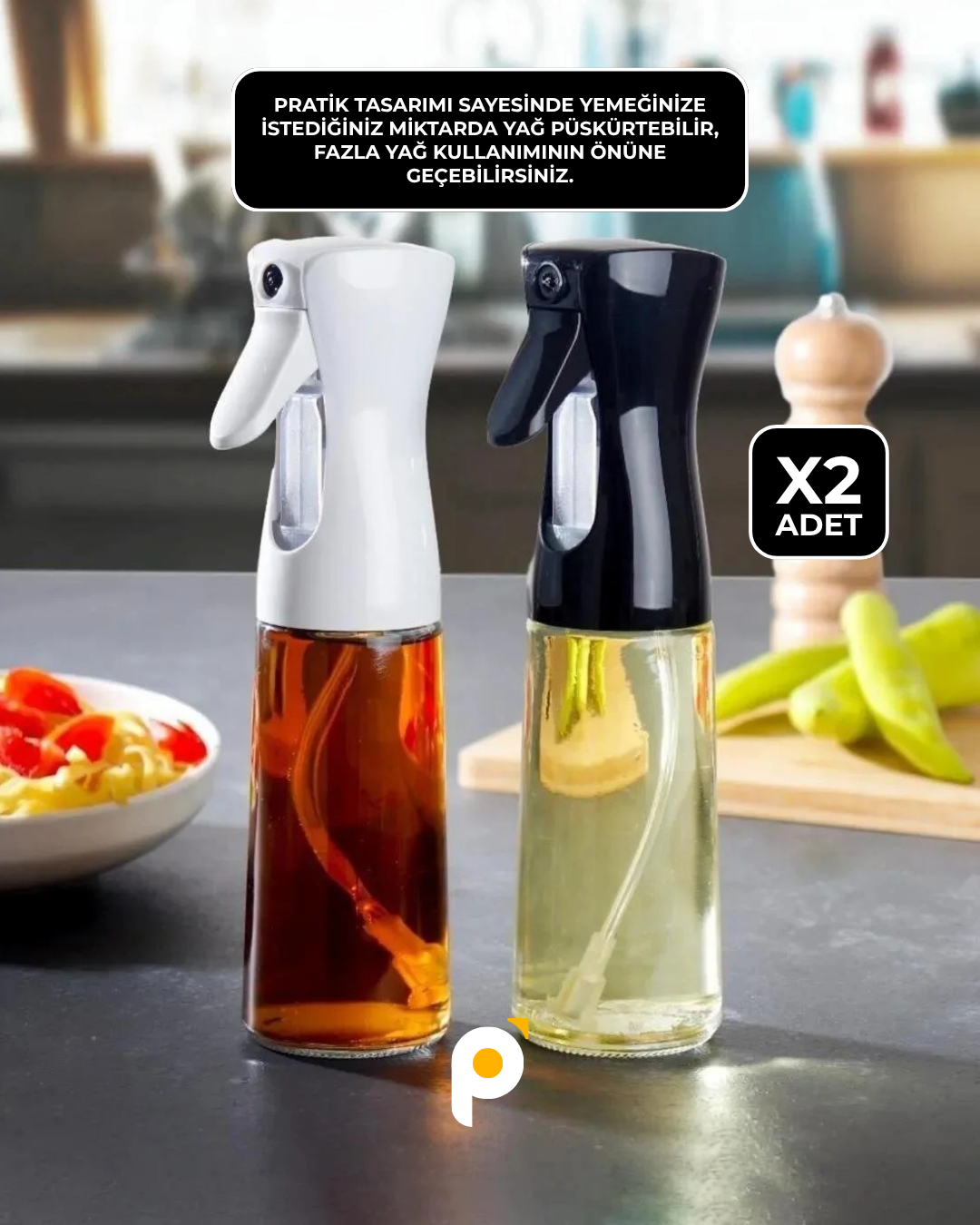 2'li Püskürtmeli Cam Şişe Sprey Yağdanlık